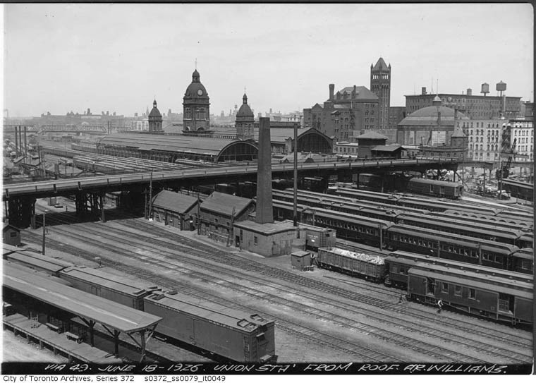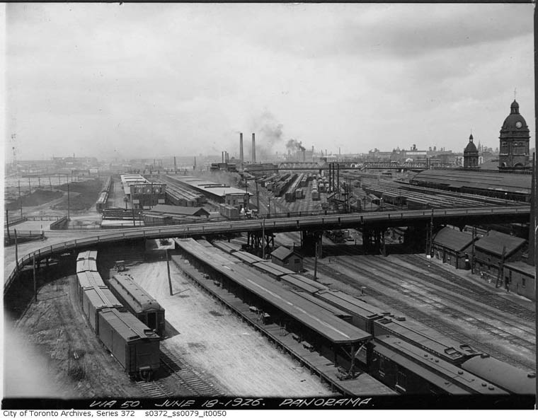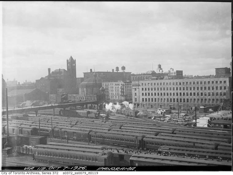 Old union station in the background. Steam plant in center next to coach yard. Looking in a westerly direction.