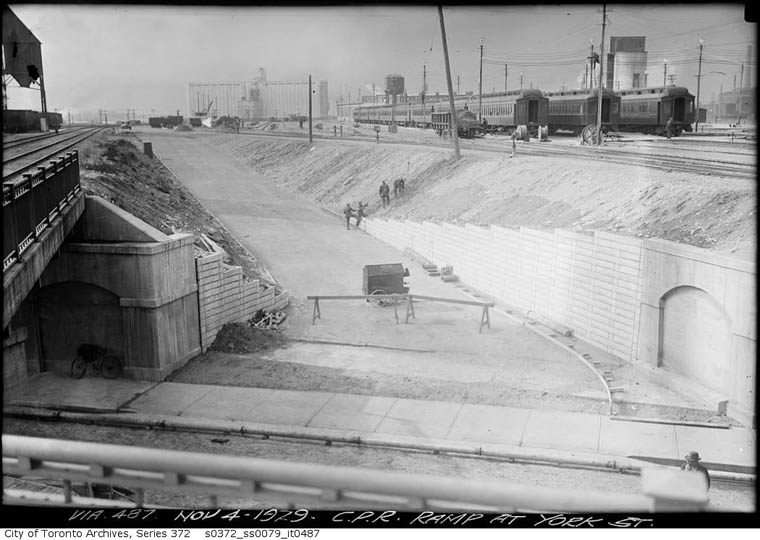 of completed roadway to CPR John Street coach yard looking west. CNR High Line