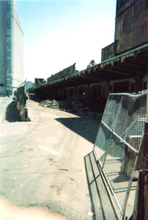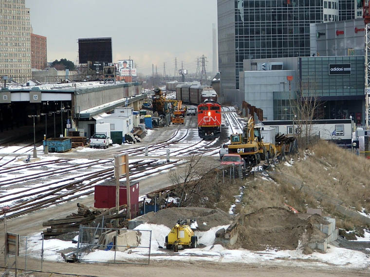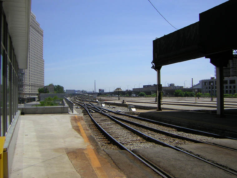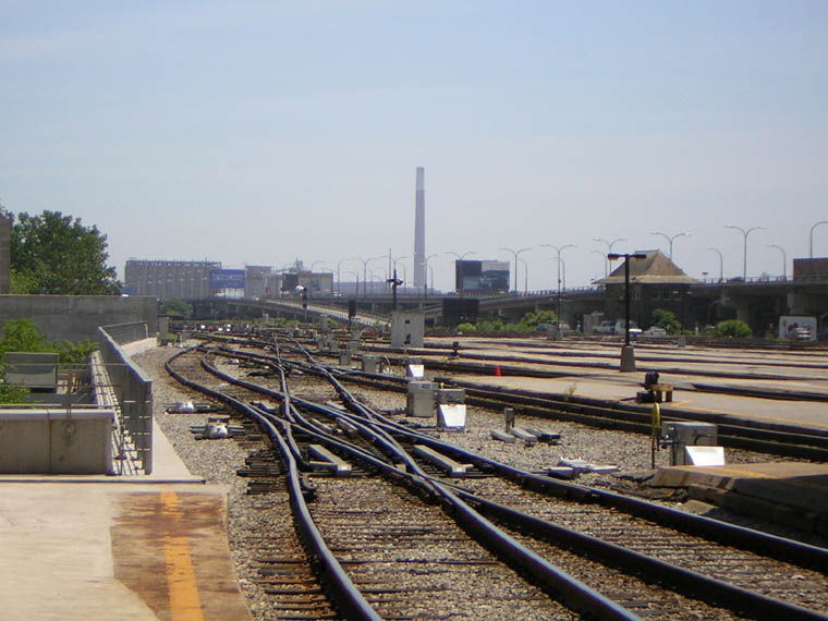 East end of platform tracks 1 and 2 Pedestrian walkway over Bay Street is to left of wall. June 20/2005 R.L.Kennedy