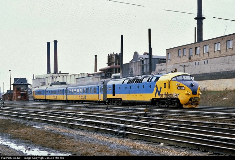 overpass leads from Union Station. Ontario Northland operated daily passenger trains including