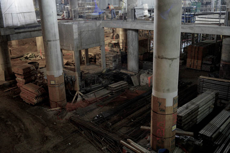 Toronto Terminals Railway Union Station Rail Corridor An enormous $640 million modernization and expansion of Union Station began in 2009 including major expansion of the GO Transit facilities and a new retail area comprising an entire new lower level addition beneath existing ground level. This construction is the most complicated part involving work on 447 large columns that support the upper structure including the moving trains themselves. For this reason only three at a time can be modified removing the several metre high portion of the rough-hewn lower part of the column that has been encased in lake fill for decades and replace it with new material. A large number of new elevators to track level are part of the improvements. Replacing most of the old train shed (except for the ends) with an atrium complete with solar panels is part of the work. Replacement of old slip switches with modern switches now permits higher speeds in and out of the station reducing time to get another train in place. A new track control system will replace old tower system in use since original construction. While the majority of the work is for growth of GO trains VIA Rail will also benefit from the improvements to passenger areas. Years of deferred maintenance inside and out is being dealt with especially all of the long vacant offices on upper levels which are scheduled to be bought by GO Transit to end leasing of a large amount of office space at nearby 20 Bay Street to the south of Union Station.