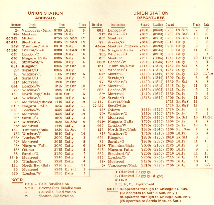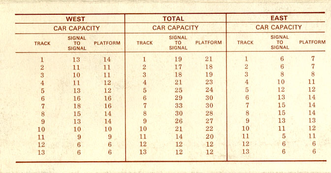 NOTE: Changes to car capacities on account of changes to trackage which included two additonal tracks.