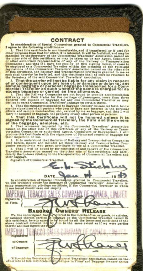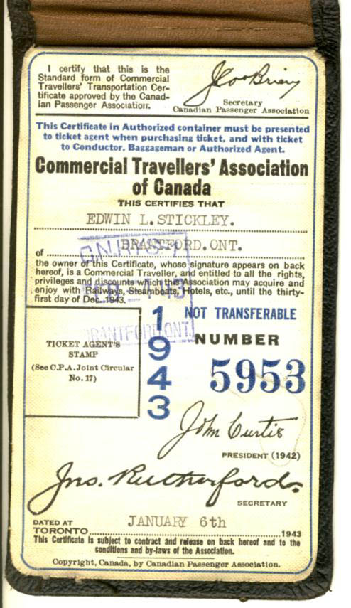 Commercial Travellers' Association of Canada Commercial Travellers were an important part of commerce and for many decades they went about their business using passenger trains to reach their customers in cities and towns everywhere. These travelling salesmen carried with them samples of their wares, all kinds of products needed all over the country. Often they would stay at local hotels setting up their wares and retailers would come to them. Other times they would go to the buyer. Large numbers of these men made their living this way,