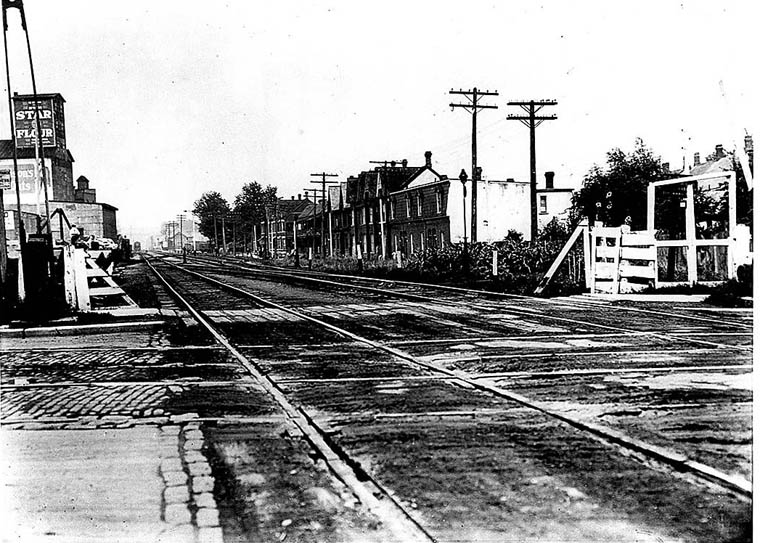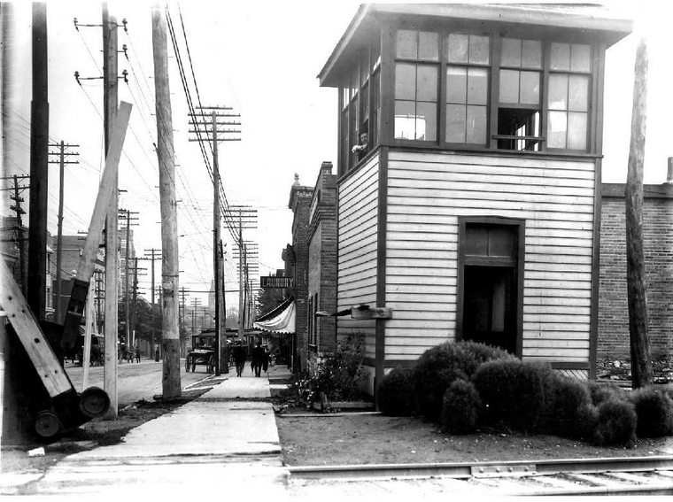 Crossing tower, looking south towards Dupont Street. c.1910 City of Toronto Archives Fonds 1244 item 7318 |