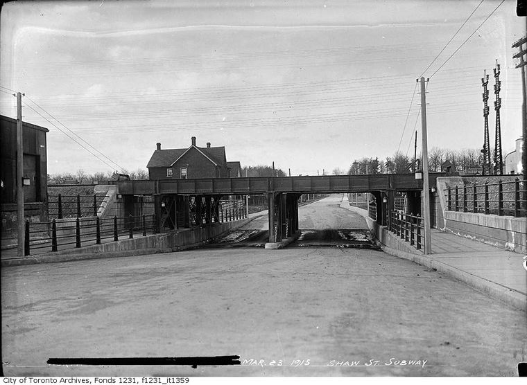 Shaw Street Mile 4.1 March 23, 1915 Level crossings not originally included Additional grade separations at later dates. Dufferin, Lansdowne and Symington. Note: Bartlett and Osler still (2022) level crossings. Level crossings before subway construction