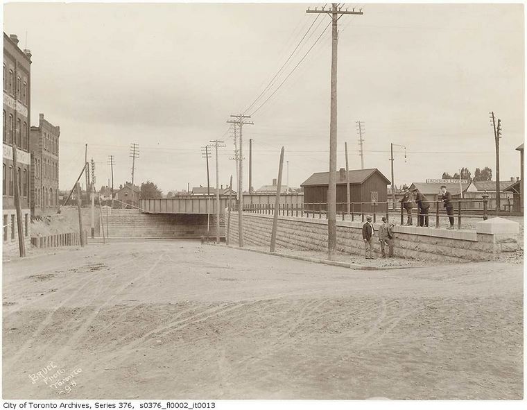 Dufferin Street looing north to Queen Street. Jackson's Livery in right background.