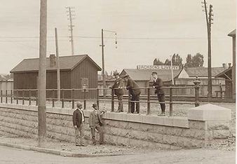 Dufferin Street looking south, shops and roundhouse in background. 1897