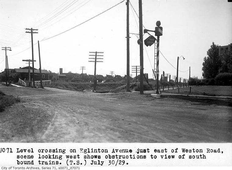 First crossing is CNR, second is CPR. Kodak is at the left. Remained as level crossings until a street underpass was opened October 27, 1966.