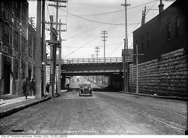 Not much traffic in this view looking north up Keele Street. Two "horseless