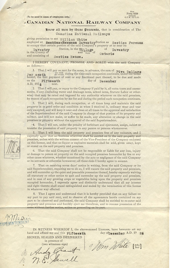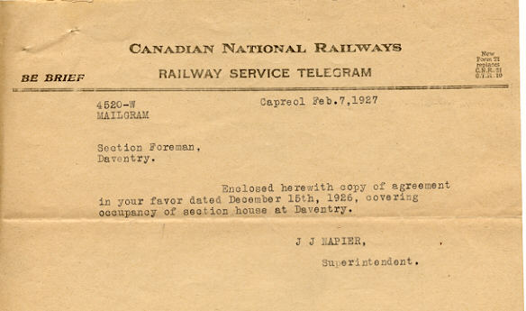 The above Mailgram refers to the lease of a railway-owned house to a railway employee. This was a common practice for many decades, especially in rural or remote areas where housing was not easy to find. The houses were usually of wood construction and very plain. Even in 1927 dollars, the rent of $5.00 per month was certainly cheap! It would represent about a days pay.