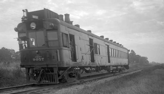 Rock Island 9057 EMC/St.Louis 1928, near Shellsburg, Iowa, September 18, 1931. Note the camera distortion. Otto Perry/Denver Public Library Collection.
