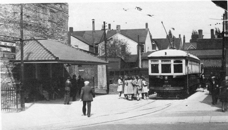 NOTE: Illuminated sign at far left says: "Weston Streetcar Terminal"