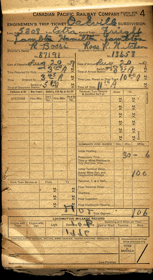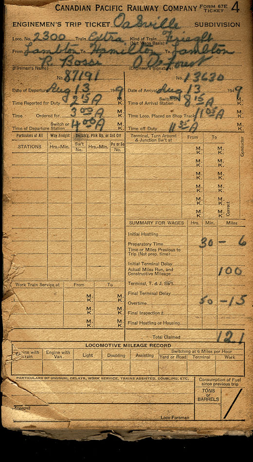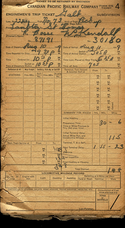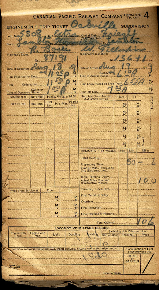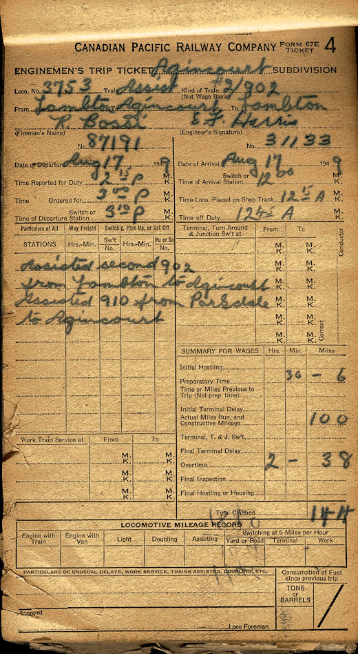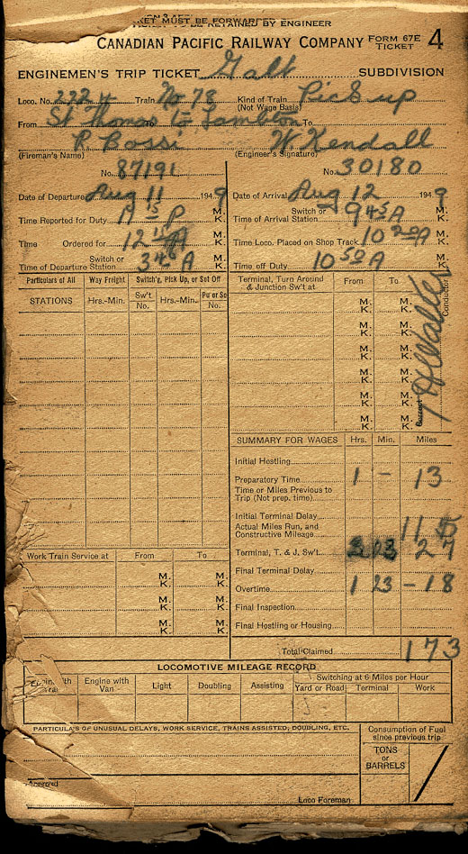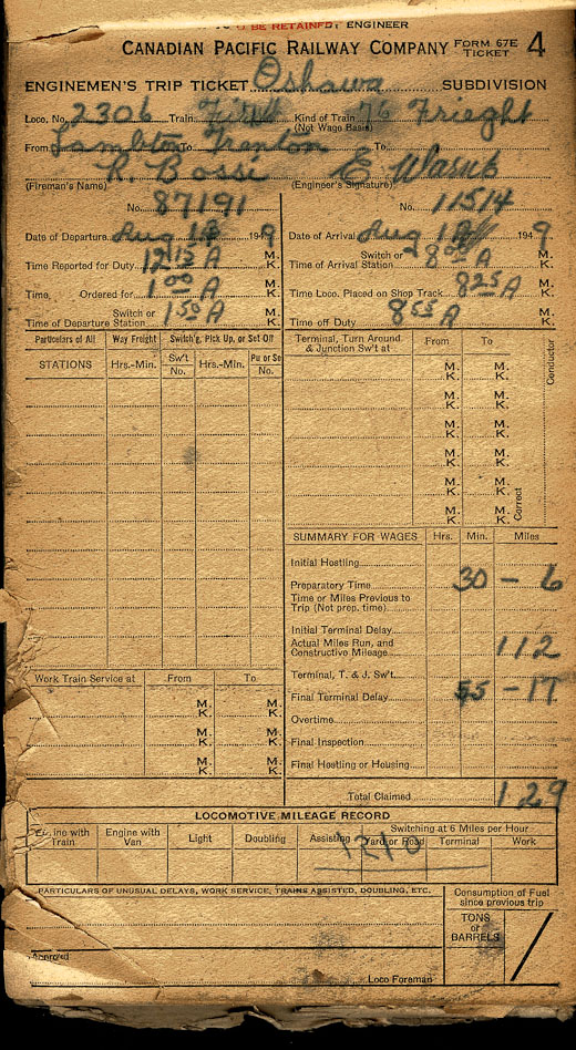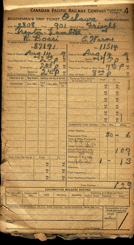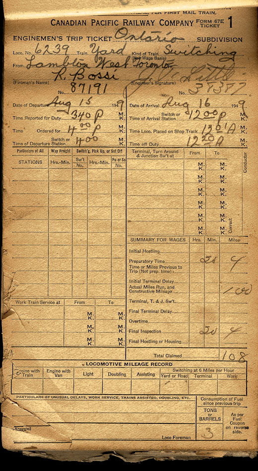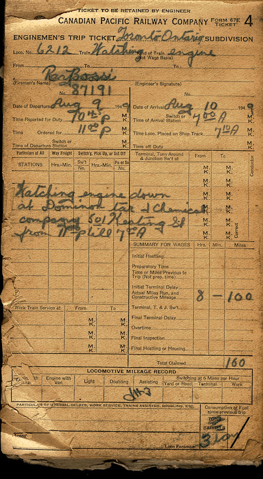 CPR Trip Tickets Trip tickets of spare fireman Ray Bossi. Donated by Ken Bossi Old Time Trains Archives