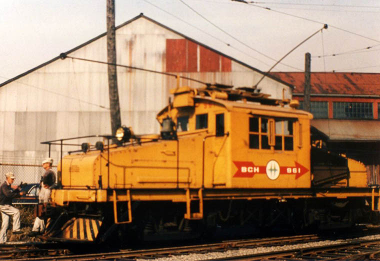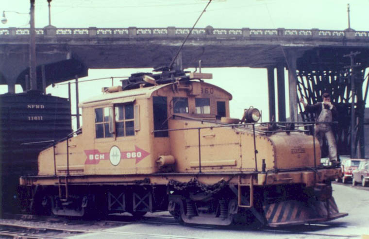 ended Early in 1946 BCE acquired four electric locomotives from the Oregon Electric Railway in Portland which had ended operations July 10, 1945. OE 21-24 became BCER 961, 960, 962 and a parts loco. They were in service June 1946. All photos 1970 Sorrensen Collection courtesy of Andy Cassidy