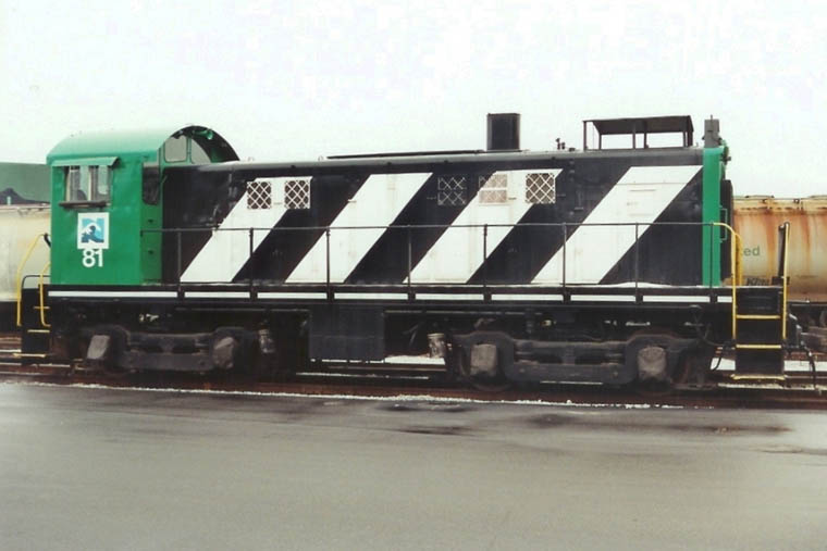 80 ex 80A (acq. 10/1980) ex SP 1271 S6 900 hp Alco #81422 11/1955 June 10, 1986 Douglas Sanford SP 1271 Taylor Yard, Los Angeles 8/29/1978 Neptune Bulk Terminals Canada Ltd. 81 (acq. 6/1981)