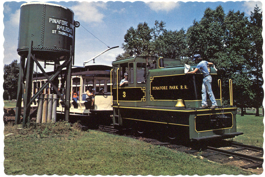 Bowaters 4, 25-ton GE 29358 4/1948 Cornerbrook 9/10/1977 Sold 1977 Pinafore Park Ry. 3 Re-sold 3/1997 Portage Flyer, Huntsville, ON |