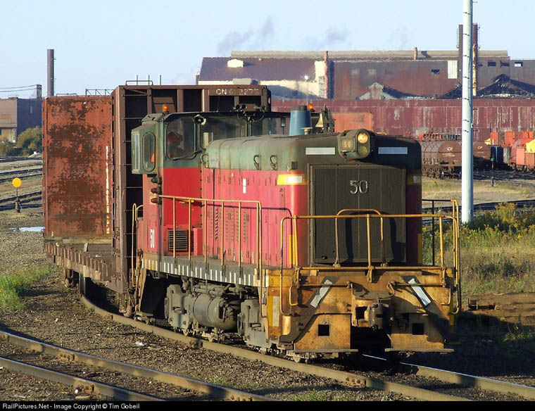 Algoma Steel 50 an old SW8 still at work, here switching interchange track in the CN (former Algoma Central) Steelton Yard October 8, 2006 Tim Gobeil