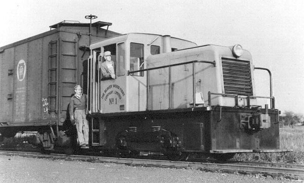 Barely enough room on the cab side of No.1 for the full name! Note the stemwinder handbrake on that Pennsy boxcar in this c.1947 view of diesel version of the "dinky" engine, a GE 25-tonner with 150 HP! Steve Timko