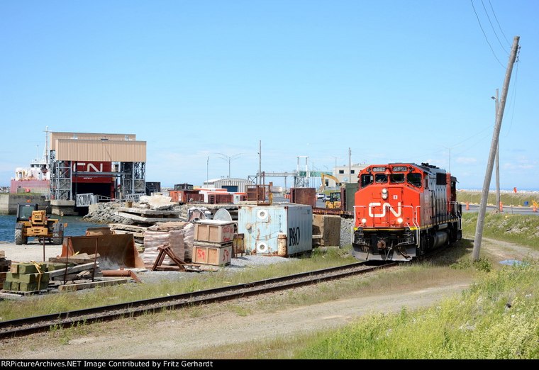 CG 79507 (ex CN 79507) used as reacher when loading/unloading ferry. Matane August 17, 2004