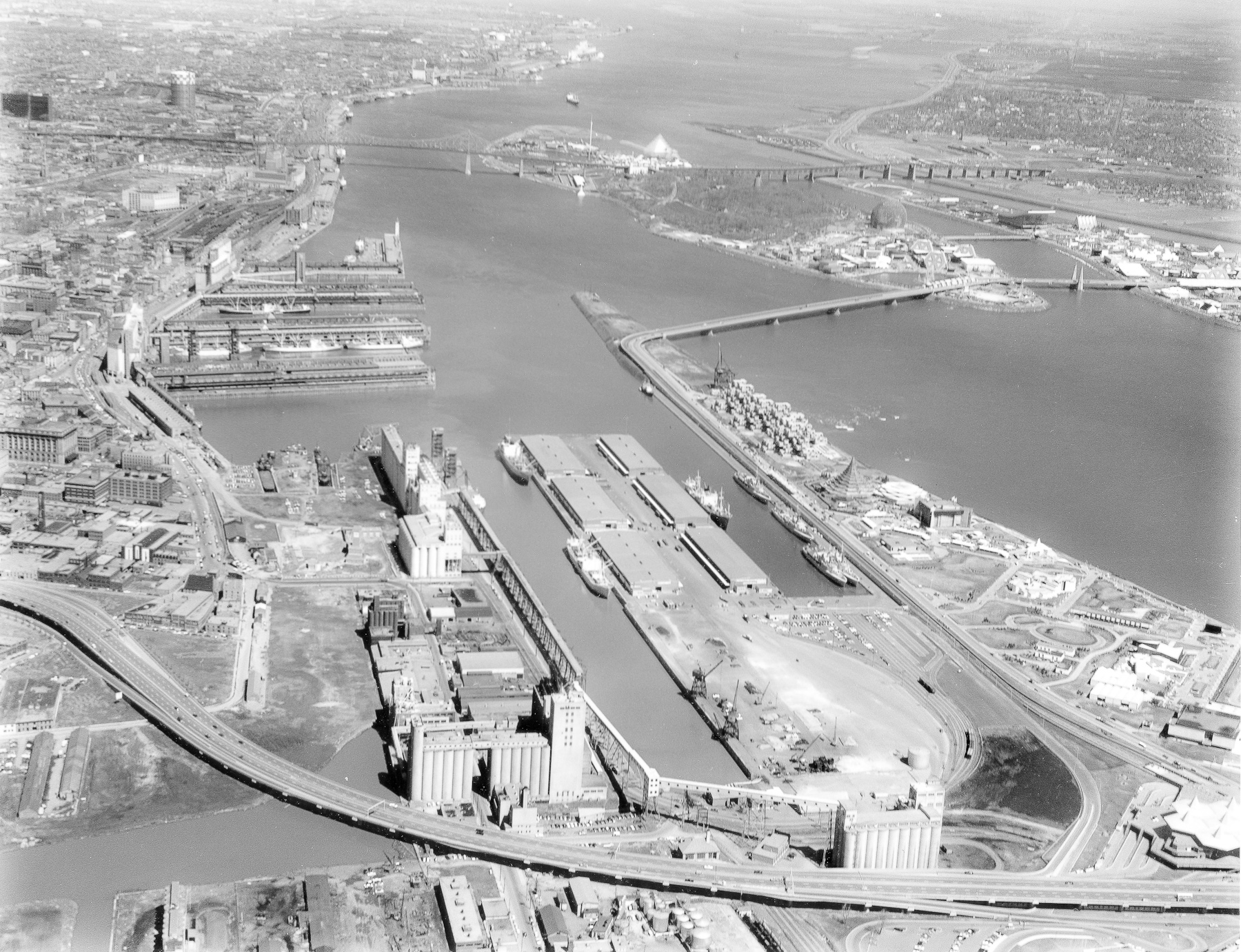 National Harbours Board Facts and figures as of April 1975. Aerial photograph of the port area