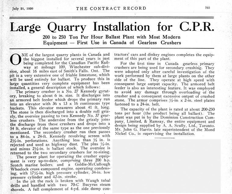 Grenville Crushed Rock Co. Ltd. Owned by Harry F. Mc.Lean, contractor: Dominion Construction Co. (1923: Grenville Crushed Stone)