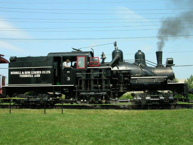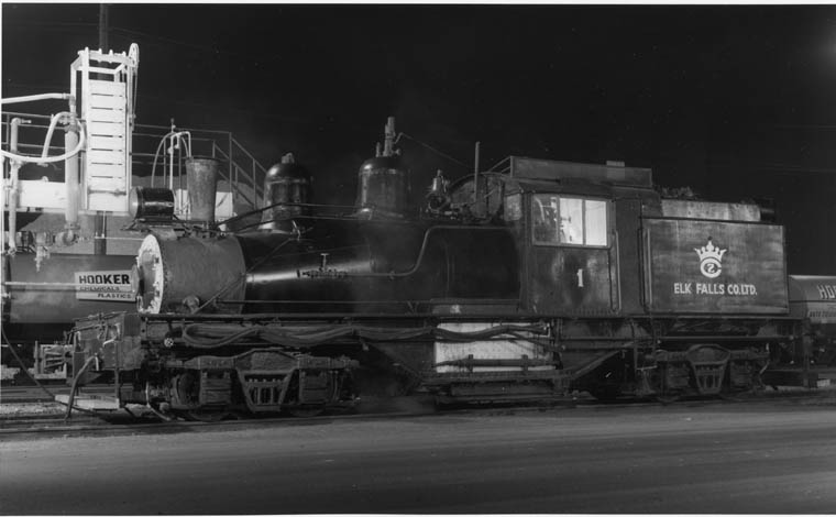 This was the last steam locomotive in Canada in use for revenue freight. It switched the barge operation at Duncan Bay on Vancouver Island and the Elk Falls paper mill an isolated operation, having been transferred there from Comox Logging & Railway of parent company Crown Zellerbach Canada. It was finally retired in 1973 and in 1974 found its way to the National Museum of Science & Technology (now; Canada Science and Technology Museum) in Ottawa where it was eventually restored to occasional operation on their property. Built for Merrill & Ring Lumber 4, Thedosia Arm, BC, it was sold in May 1942 to Comox Logging and Railway 15 for their extensive logging railway at Ladysmith, VI. In 1951 it went to Elk Falls.