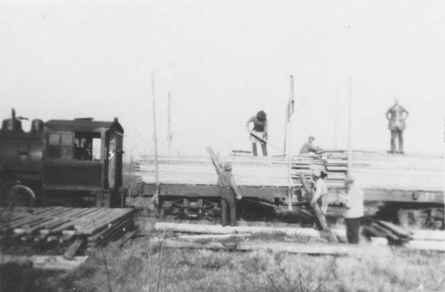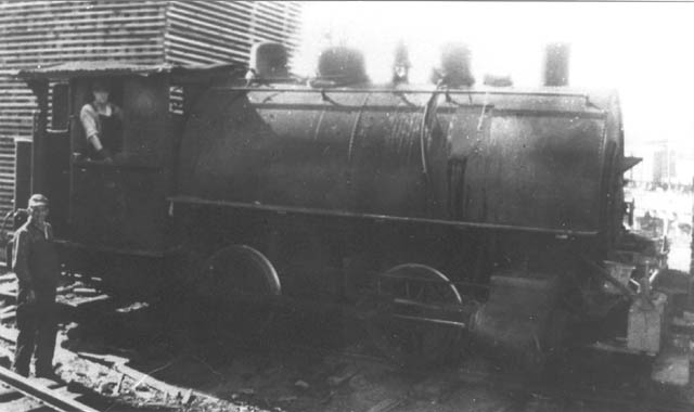 CWPC still shows on engine at Foleyet. Note: Continental Wood Products Corp. operated a mill at nearby Elsas 1920-1929. Acme Timber Company of Sudbury was formed in 1922 as a major supplier of mining timber to INCO. Acme Timber acquired R. B. Heron's mill at Tionaga in 1925, then the CNR mill at Foleyet in 1926. (purchase of the mill was actually autumn of 1925). While both locomotives were used at Foleyet at the same time, one of them, most likely the # 3 was taken to Tionaga for use at that mill later on. D. H. Haight of this firm, formerly associated as Haight and Dickson (since 1903) had been a major supplier of mining timber, railroad ties and cordwood fuel, for Inco's open air roast yards at Copper Cliff and O'Donnell. In 1902 the first president of the newly formed International Nickel Co. Ambrose Monell, sent his cousin D. H. Haight, up from New Jersey, to contract for this work. Haight's brother-in-law Ben Foote Merwin became manager of Acme Timber. In 1932 Merwin formed the Pineland Timber Company, which took over Acme March 15, 1934. Haight & Dickson operated a mill at Bethnal 1922, though it burned down about a year later. Pineland Timber