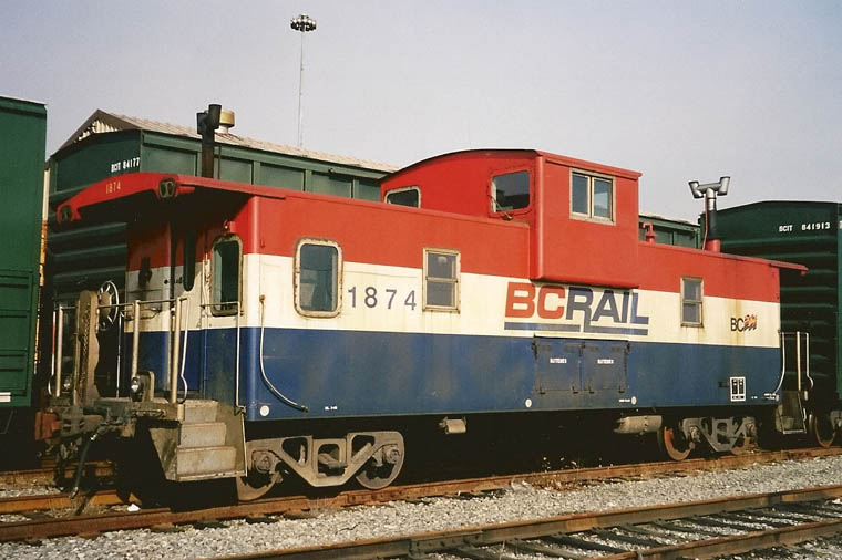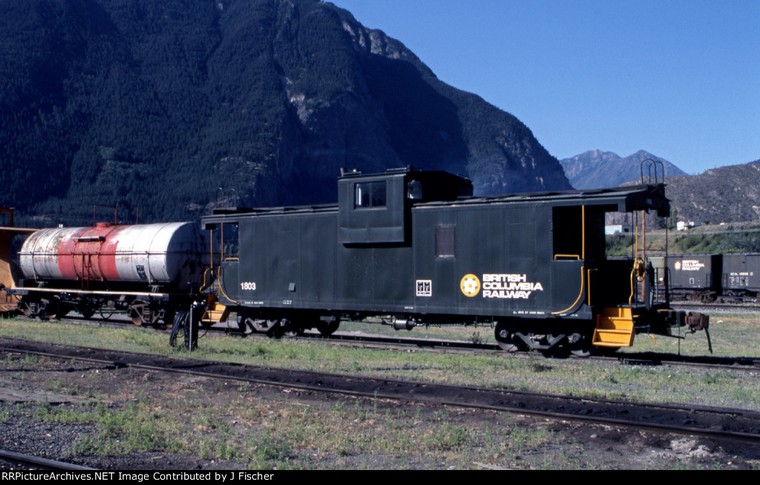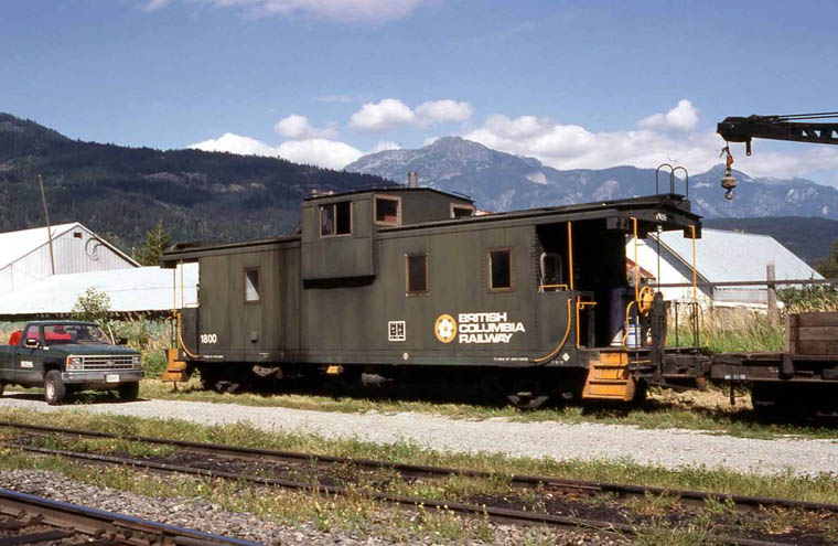 BCOL 991981 tank car plus BCOL 1803 caboose. Lillooet 7/25/1986