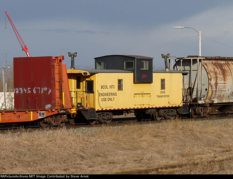 BCOL 1873 now owned by CN (small letters on cupola) mid-train at Ardrossan, AB 4/22/2011 Steve Arnot
