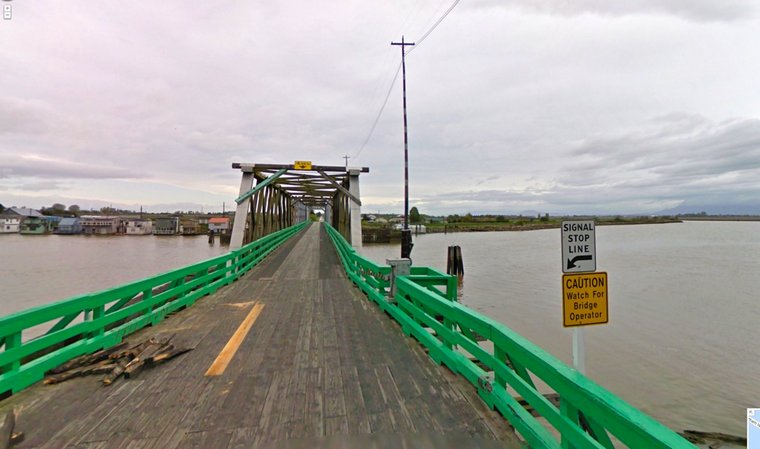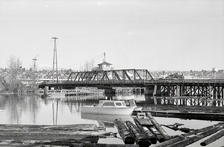 a photo of the B.C. Electric Lulu Island swing span bridge.