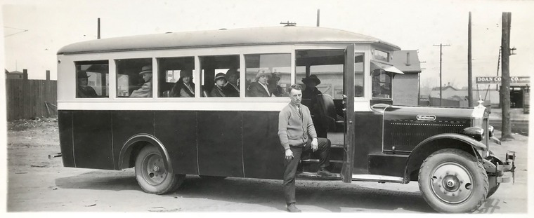 One of two large Gotfredson buses. Russell Fyfe who launched the service