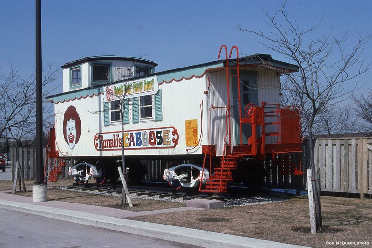 CN 78546 in a really fancy paint scheme! Ontario Street East, Stratford,ON April 1,1994 Note: Relocated here in 1993 from McDonald's 431 Highland Rd. West in Kitchener, ON.