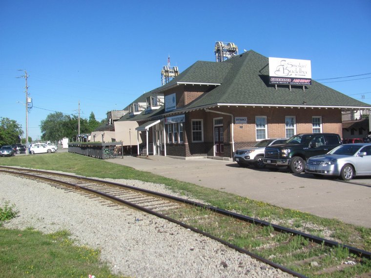 Track in foreground is Port Colborne Harbour (railway owned by city) and contracted to Trillium. Note Welland Canal lift bridge hidden behind restaurant roof.