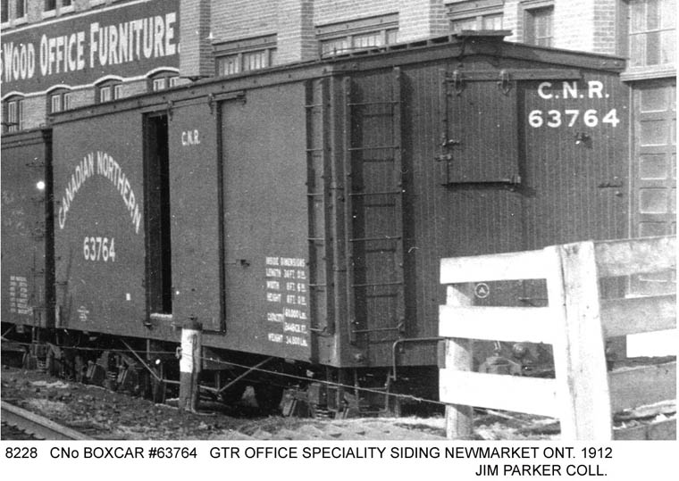 CNoR 63764 36 foot wooden box car. Note small end door for grain use.