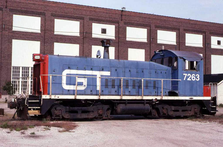 Grand Trunk 7263 (7262-7268 7 units) SW900 900 hp EMD 24974 11/1958 One of three units 7262, 7263, 7264 equipped with dual controls for Battle Creek Yard.