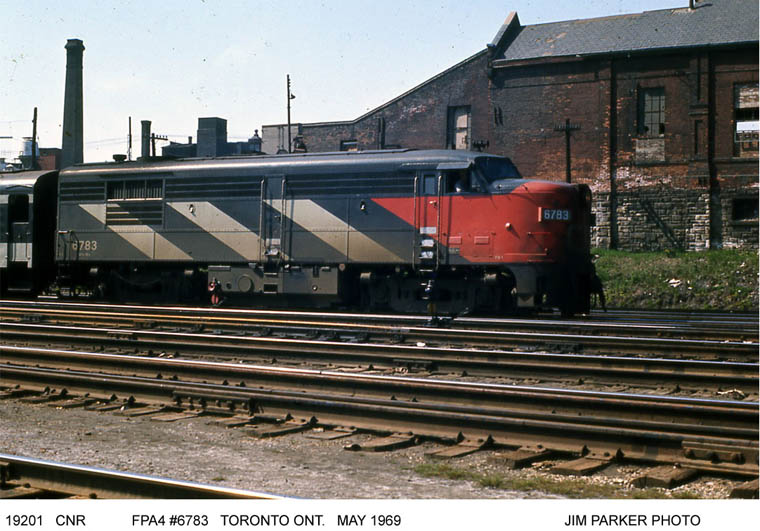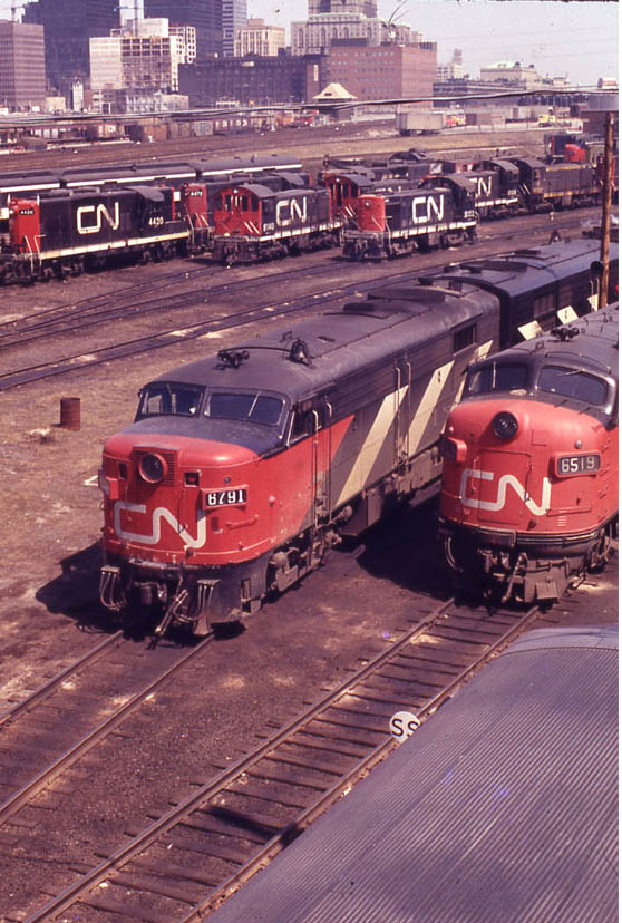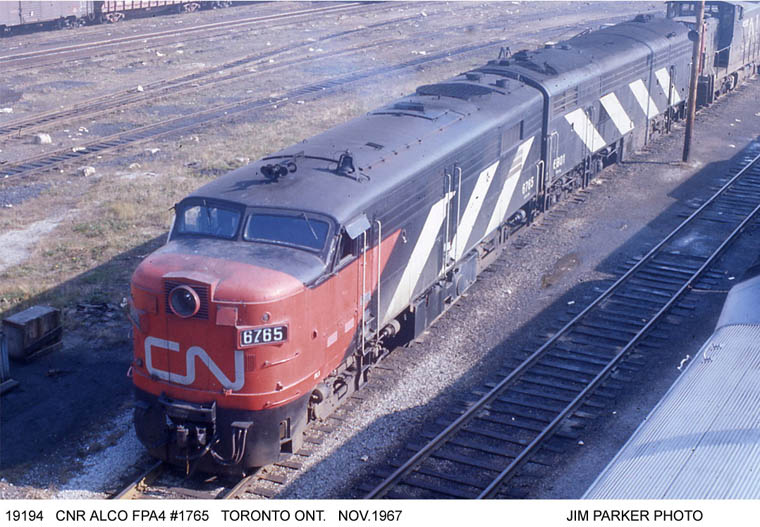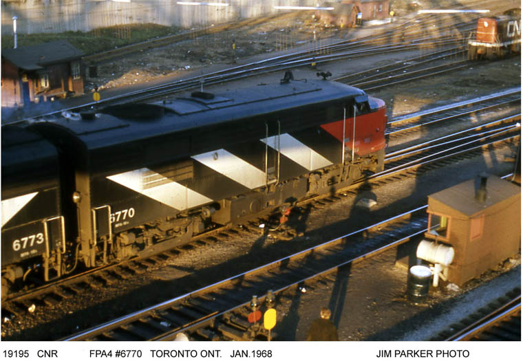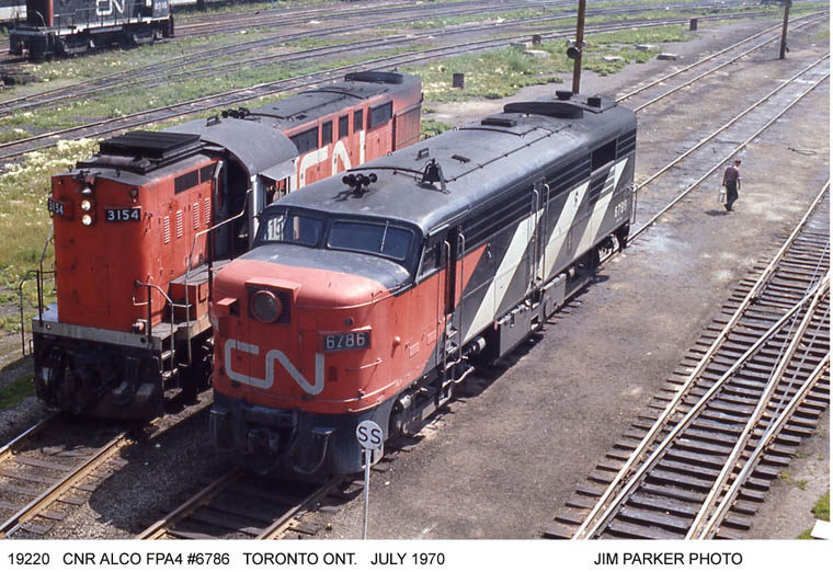 Nothing but "Alcos" in this scene at Spadina shop track refueling area. Tempo cars in the background.