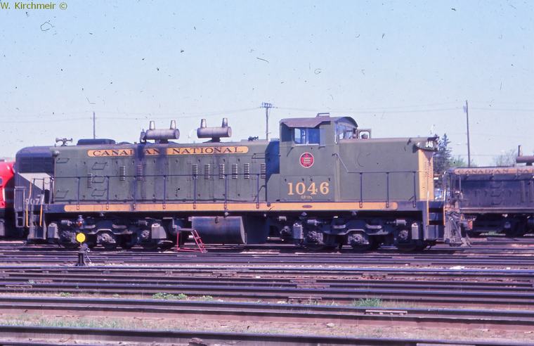 1046 (part of 16 unit order 1034-1049) at Calder, the main yard for Edmonton. June 1967 Note: Calder was founded by GTP on former Hudson Bay Company land. The village joined Edmonton in 1917.