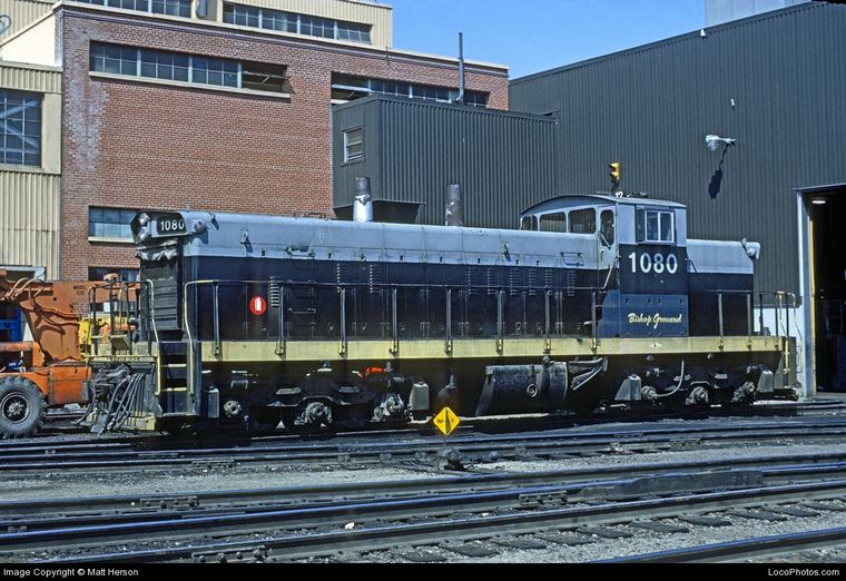 lettering but still with name Bishop Grouard. Rebuild program 1/1990 renumbered 1180. Rebuild program 1983-1990 46 units with Flexicoil B-B trucks off retired