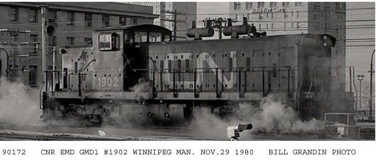 1153 (ex 1053 2/1987) GMD A1750 10/1959 Brandon, MB August 1992 Jim Booth 1900-1917 passenger units equipped with steam generator and 89 mph gearing.
