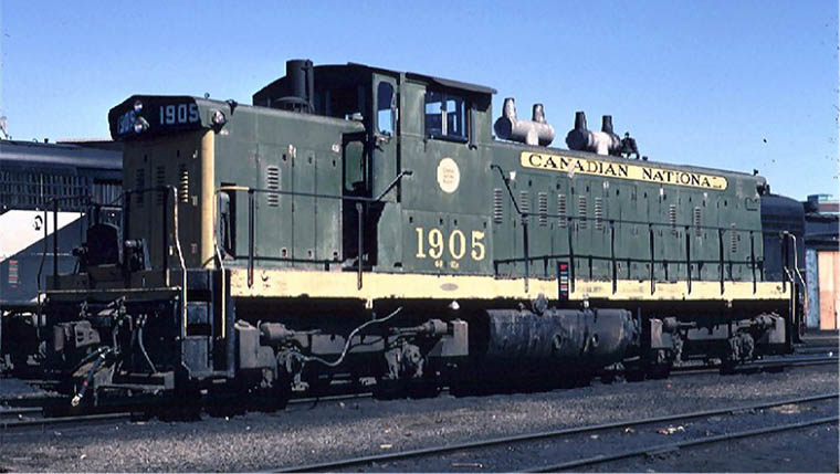 1915 equipped with B-B trucks. GMD A1589 1/1959 Thunder Bay 2/21/1994 Rebuild program. 1600-1614 A-1-A GMD 12-645C 26L 120 tons 30% t.e. short hood leading
