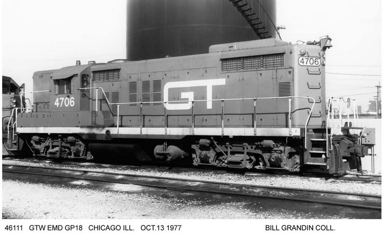 One of only11 GP18 1800 HP EMD units built for GTW in 1960. (4700-4707 freight 65 mph and 4950-4952 passenger 83 mph S.G.)