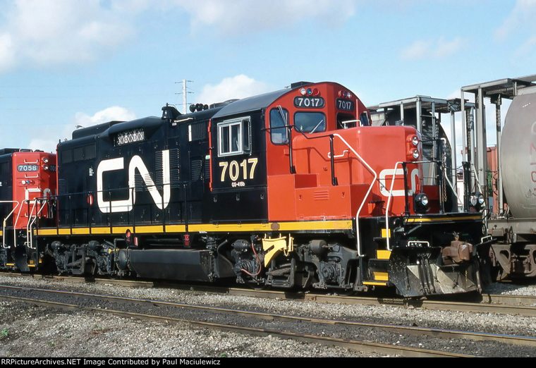 7017 (ex 4319) GMD A1676 3/1959 remanufactured 6/1991. Equipped for