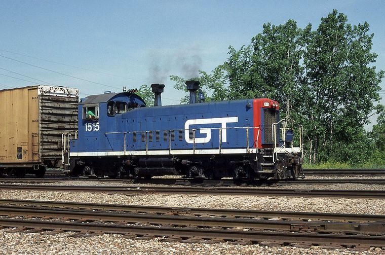 Grand Trunk Western Grand Trunk GTW 1511-1519 (9 units) SW1200 M.U. and Flexicoil trucks for road service.