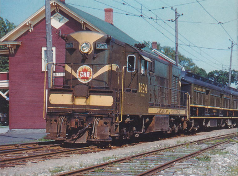 1624 with passenger train on the M&SC electric line. 5/1955 Marieville, Que. Novak/Joseph Testagrose Collection
