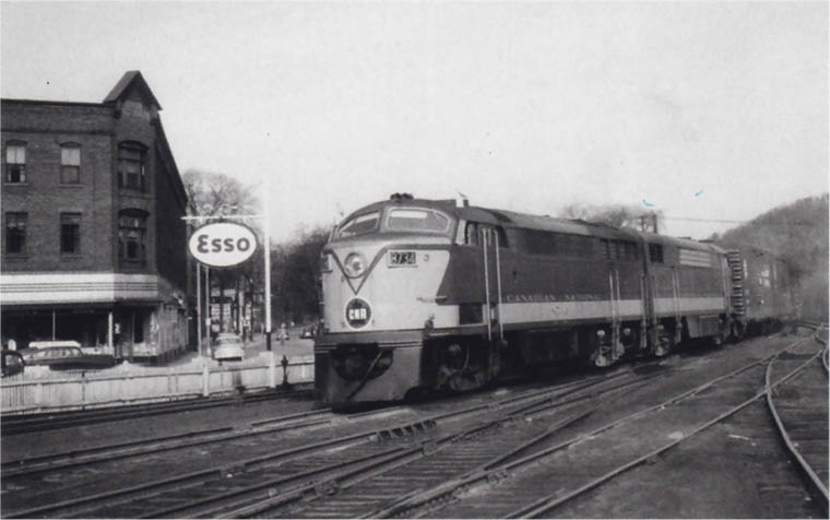 8734 (renumbered 9334) leads a freight through White River Junction,