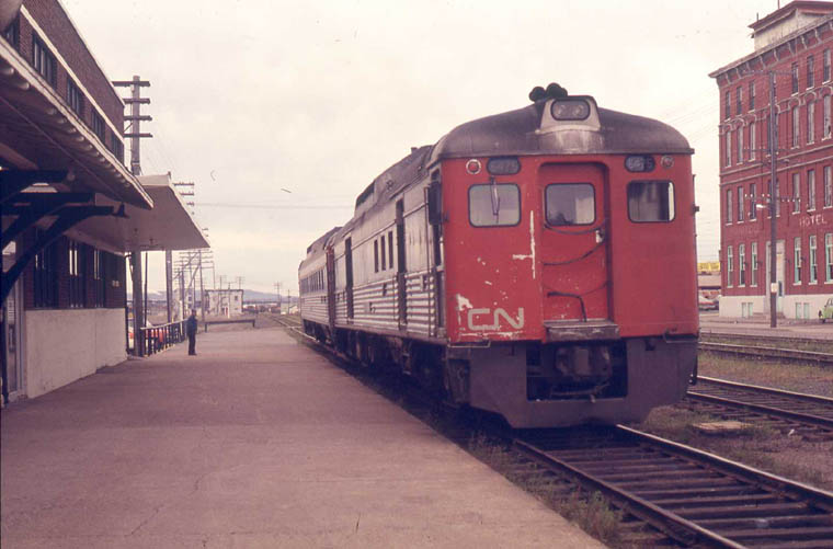 6475 trails an RDC-1 on the tri-weekly Thunder Bay-Winnipeg run. Port Arthur 10/1973 D'Arcy Furlonger