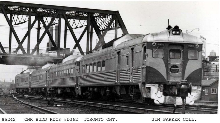 D-362 leads and another RDC-3 trails a pair of RDC-1's arriving under Bathurst Street.