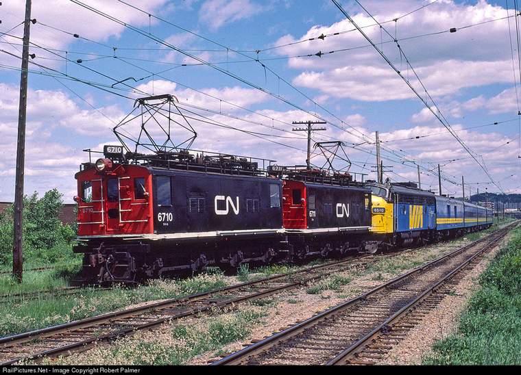 201 and M-5 side-by-side at Mount Royal 8/31/1957 Preserved All electric locomotives were retired in 1995.
