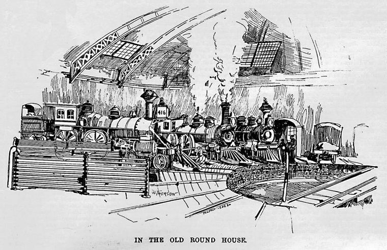 Photographs of the enclosed Grand Trunk roundhouse in Toronto are quite