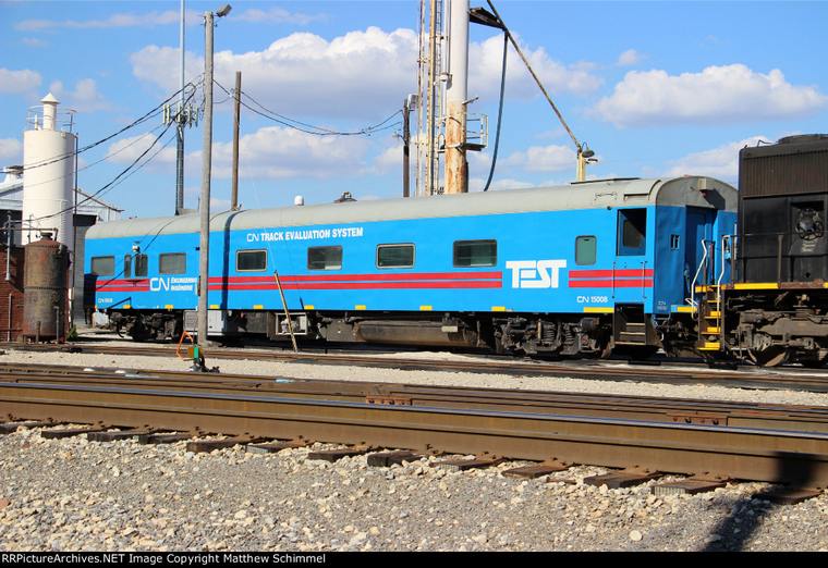 15008 TEST Track Evaluation System car and its power car 15007 (below). Ex 1082 Cape Rosier. Built Pullman-Standard 1954